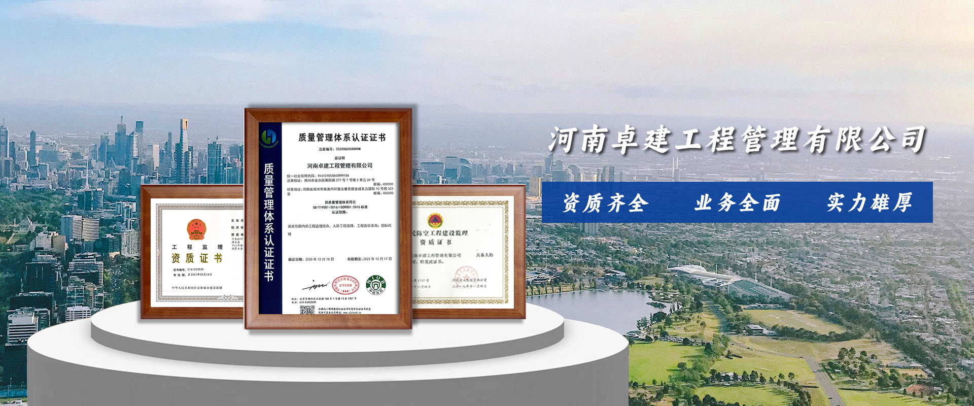 河南卓建工程管理有限公司(前身名為河南卓建建筑工程監(jiān)理有限公司)是經(jīng)鄭州市工商行政管理局批準(zhǔn),成立于2011年,經(jīng)營(yíng)業(yè)務(wù)范圍包括建筑工程監(jiān)理、工程監(jiān)理、工程項(xiàng)目管理、招標(biāo)代理、造價(jià)咨詢等,具有工程監(jiān)理綜合資質(zhì)、人防工程丙級(jí)資質(zhì)、造價(jià)咨詢資質(zhì)乙級(jí)。公司已通過質(zhì)量管理體系認(rèn)證、職業(yè)健康安全管理體系認(rèn)證、環(huán)境管理體系認(rèn)證,公司是河南省監(jiān)理協(xié)會(huì)會(huì)員單位。